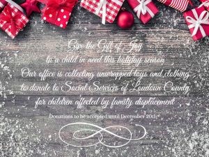 Dr. Whitman and her team at Leesburg Family & Cosmetic Dentistry held a toy and clothing drive in December 2021 to provide holiday gifts and clothing to children affected by family displacement at Social Services of Loudoun County.
