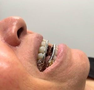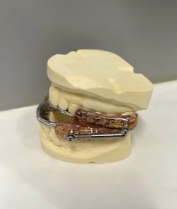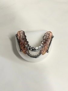 In the first appointment, Dr. Whitman took impressions and measurements to fabricate a mandibular advancement device for the patient. This device allows for less restricted airflow and reduced snoring while sleeping.