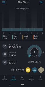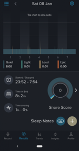 These are photos from the patient’s sleep app after the second adjustment showing her sleep cycle, restfulness, and significant reduction in snoring.